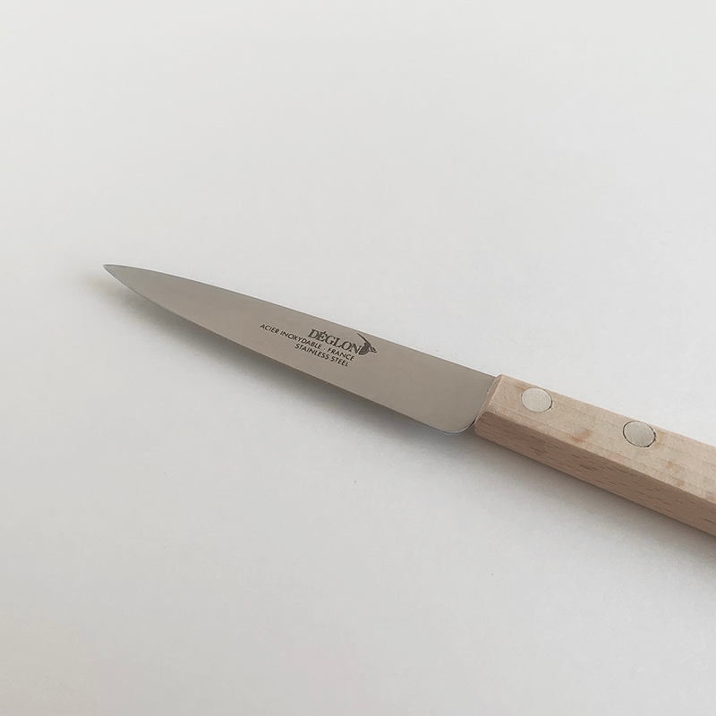 フランスのティエという町で調理器具を作り続けているブランド「Deglon-デグロン-」のペティナイフ。皮をむく、切りそろえる、削り取るなど小さいナイフの得意とする作業をすべてこなしてくれるナイフです。