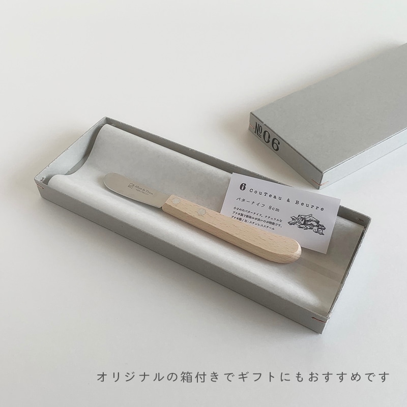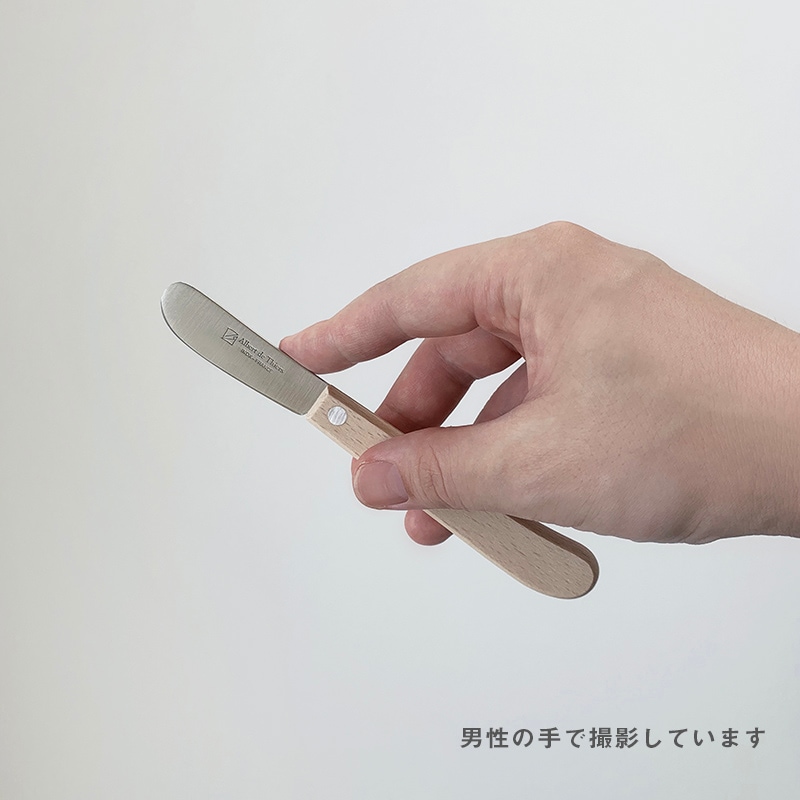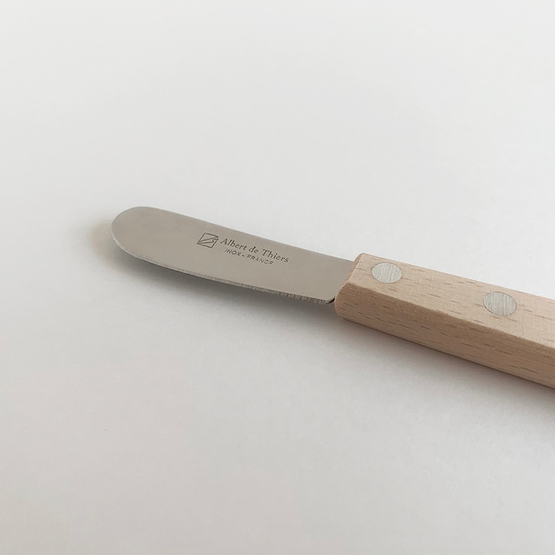 フランスのティエという町で調理器具を作り続けているブランド「Deglon-デグロン-」のバターナイフ。刃はステンレススチールを使用、柄はフランスの森で採れたブナ木製。シンプルながら少しかわいらしさも感じられるデザイン。少し小ぶりなのでお子様の手でも使いやすいサイズ感です。
