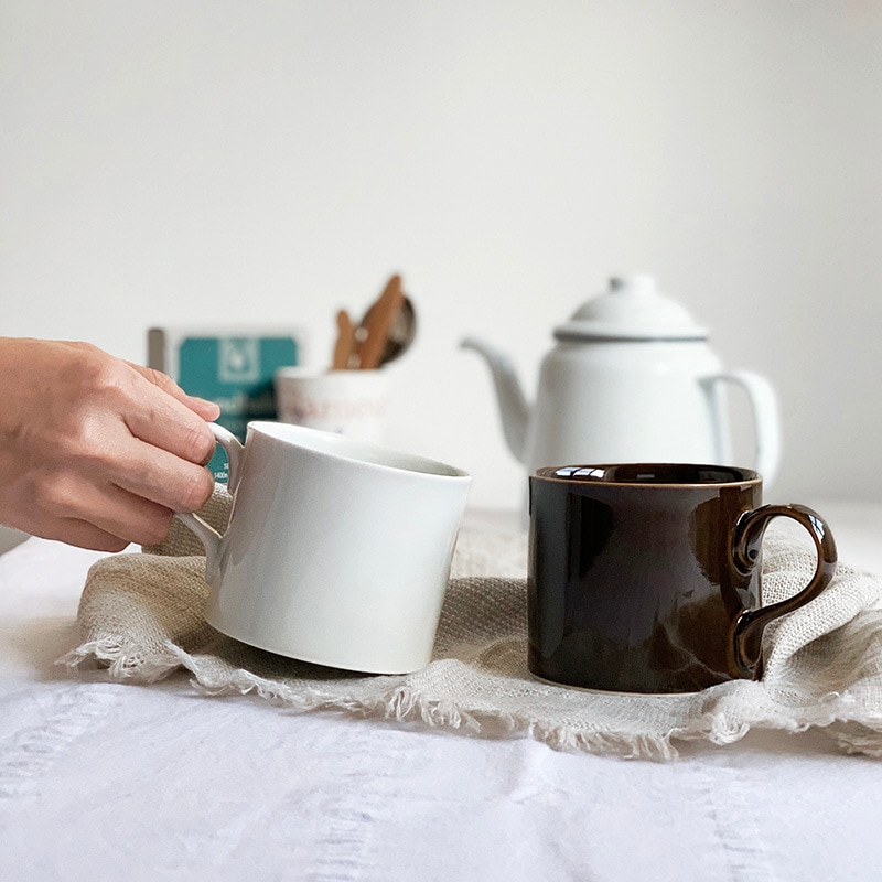 均整の取れたフォルムで持ち手も美しく持ちやすい形。薄い素地で作られ飲み口もわずかに反っており口当たりが良く、毎日使いたくなる心地よさ。300ml容量でたっぷり入るサイズはコーヒーや紅茶はもちろん、スープやシリアルにも使いやすいです。