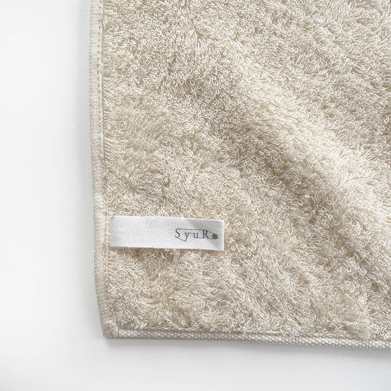 愛知県今治市で作られるSyuRoさんのオーガニックタオルです。ふんわりした肌感としぼりやすく乾きやすい使い勝手両方を掛け合わせた使い勝手良いタオルです。
