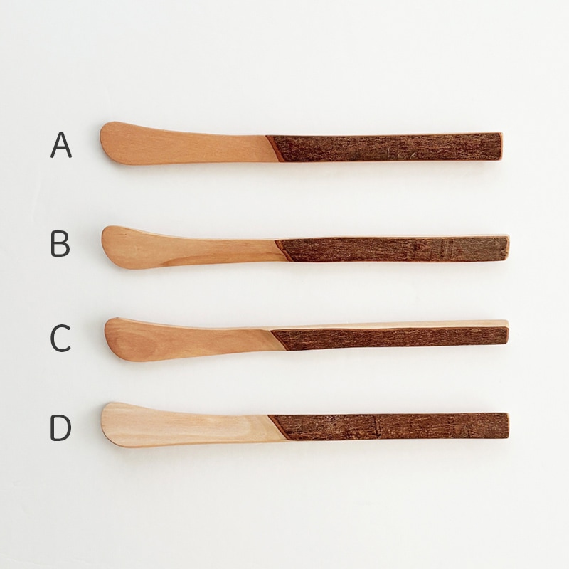 ナチュラルな樹皮の風合いは使っていくうちに少しずつ濃くなり味わい深い色合いに。バターナイフやジャムスプーン、餃子の餡を包む際にも。