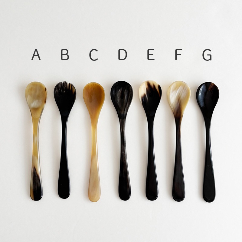 デンマーク北西部の小さな村にある工房、Hornvarefabrikkenがつくる牛の角でできたマーマレードスプーンです。古くから続く伝統技術を継承してきた職人たちが手作業で丁寧に磨き上げ、美しい光沢と手になじみやすい質感が特徴的なカトラリー。さらっとしてますがどこか温もりを感じる触り心地です。