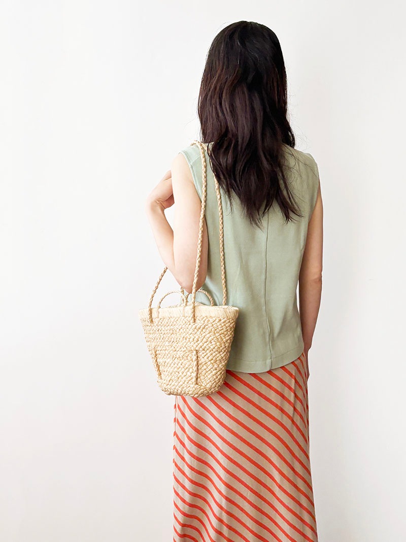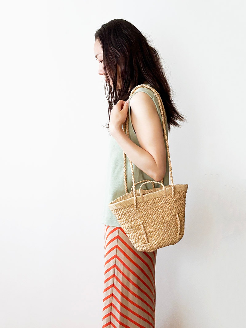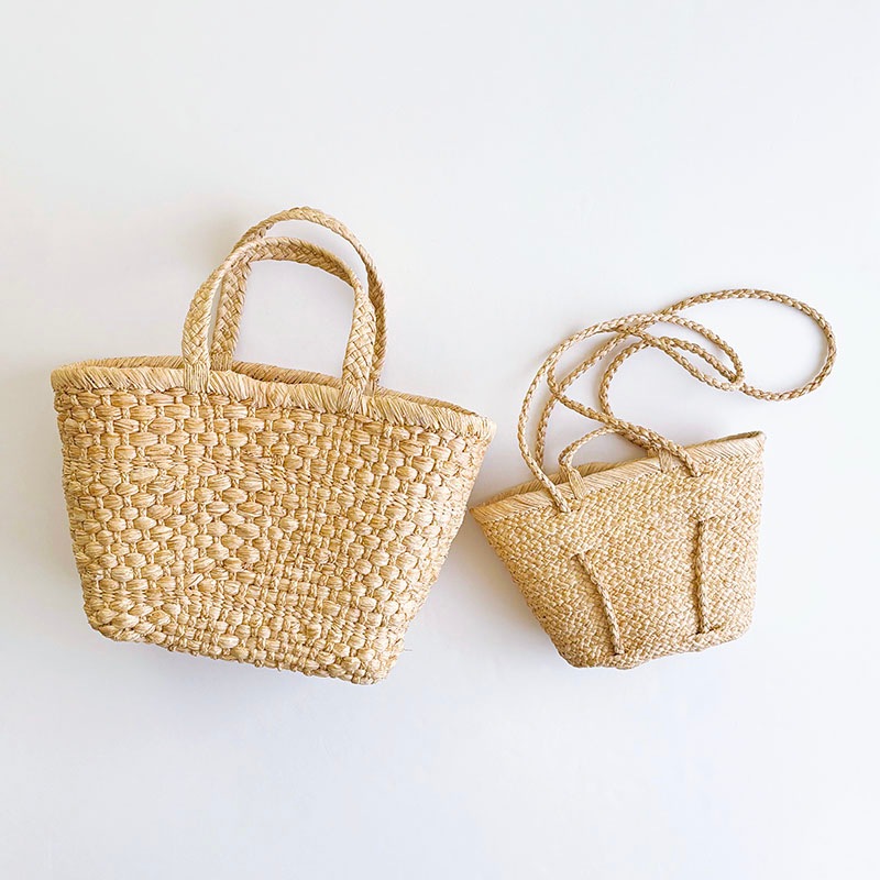 |手軽な大きさで使いやすいハンドメイド夏かごバッグ。