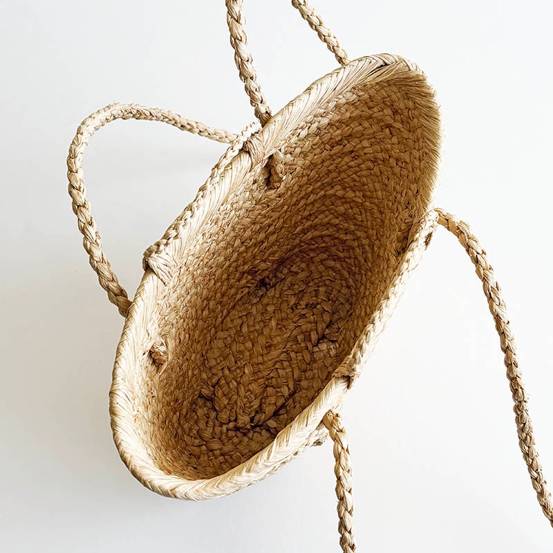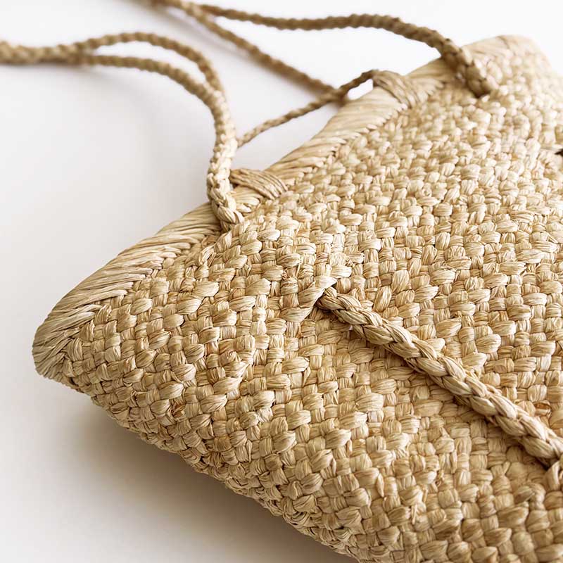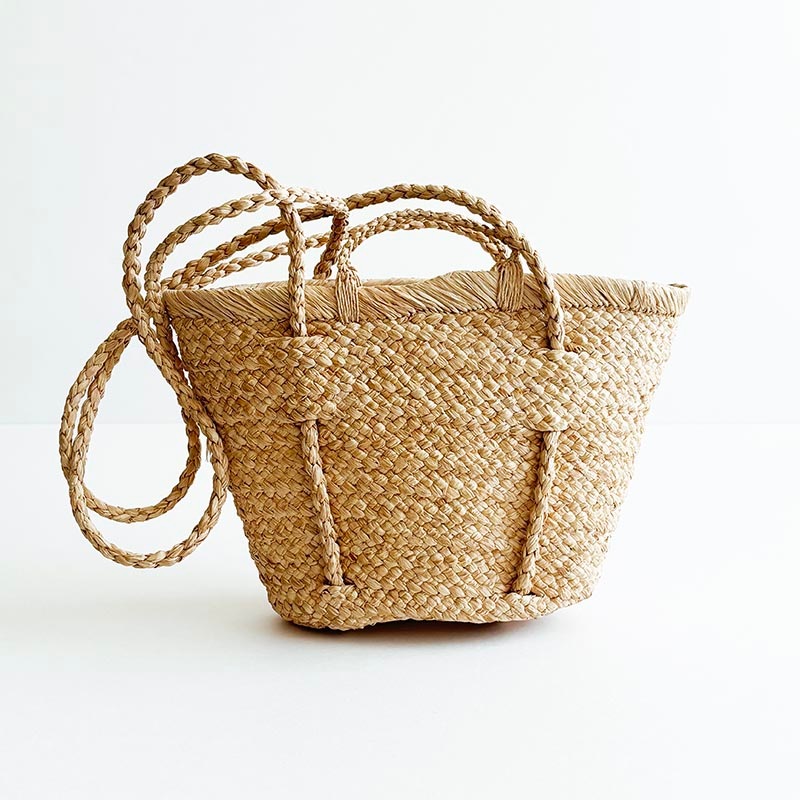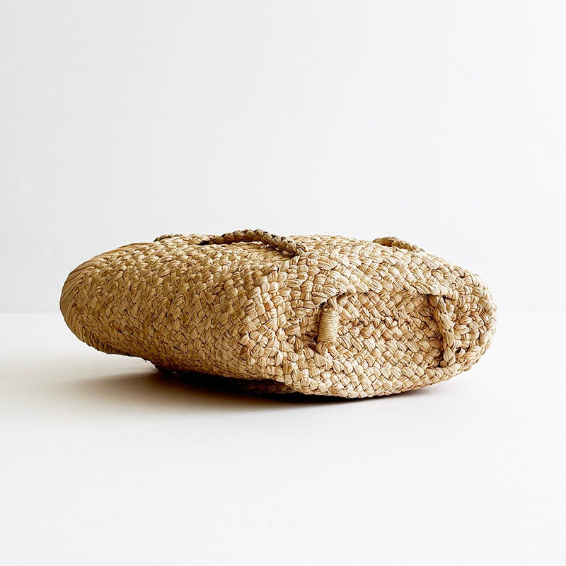 素材には強くしなやかさできれいなツヤがある良質なマダガスカル産ラフィアを使用。素材の生産からカゴの編み上げまで全て手作業で行われています。