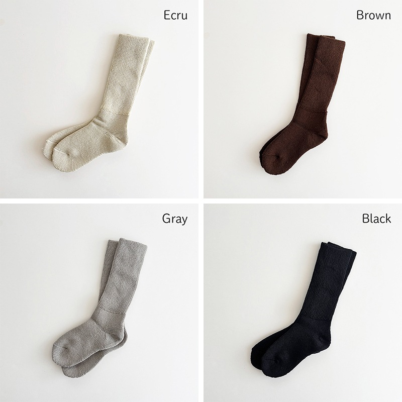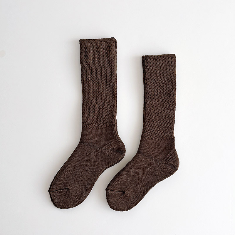 一般的にリブから下は足底のみパイルが多い中、くるぶしからつま先まで総パイル仕様。吸水性、クッション性の機能面が主ですが、何より足を通した時のバスタオルに包まれたような気持ちよさが感じられます。
