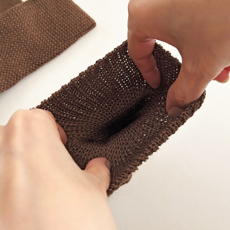 ホールド感をアップさせるため、かかとは通常の靴下より大きく編み立てています。
