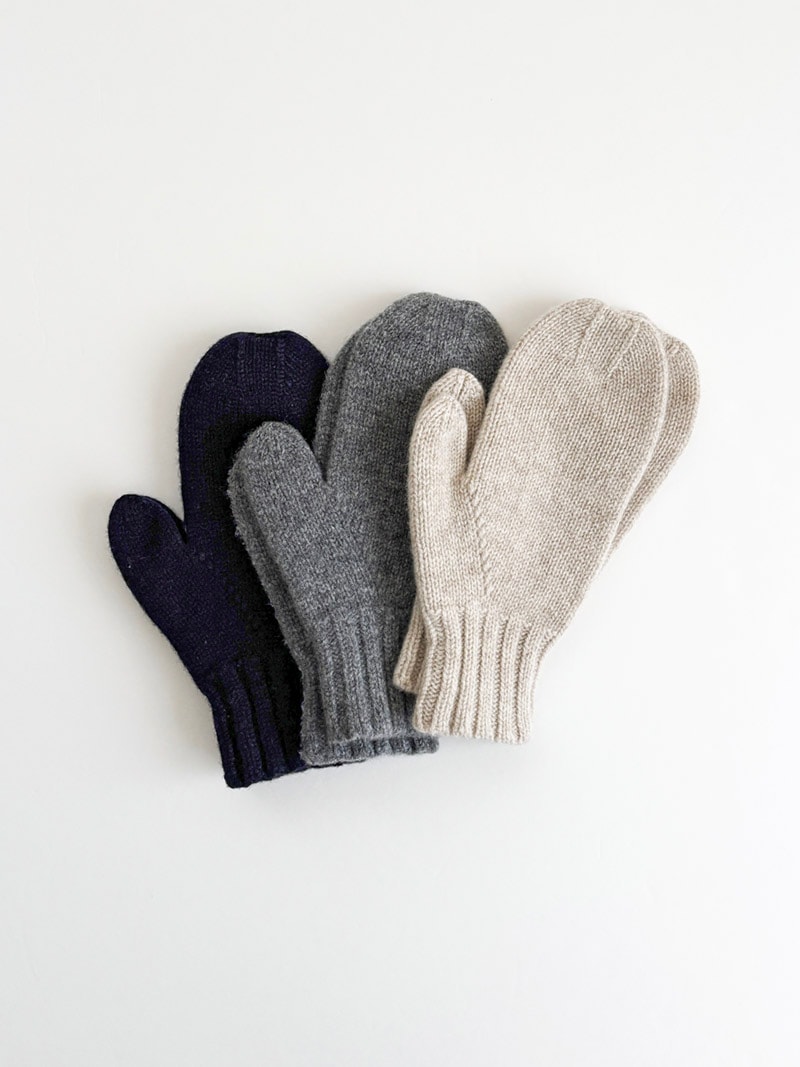 スコットランドの老舗ニットファクトリーRobert Mackieのミトンです。生後5〜7か月の仔羊の羊毛から採れたラムウールを使用しています。