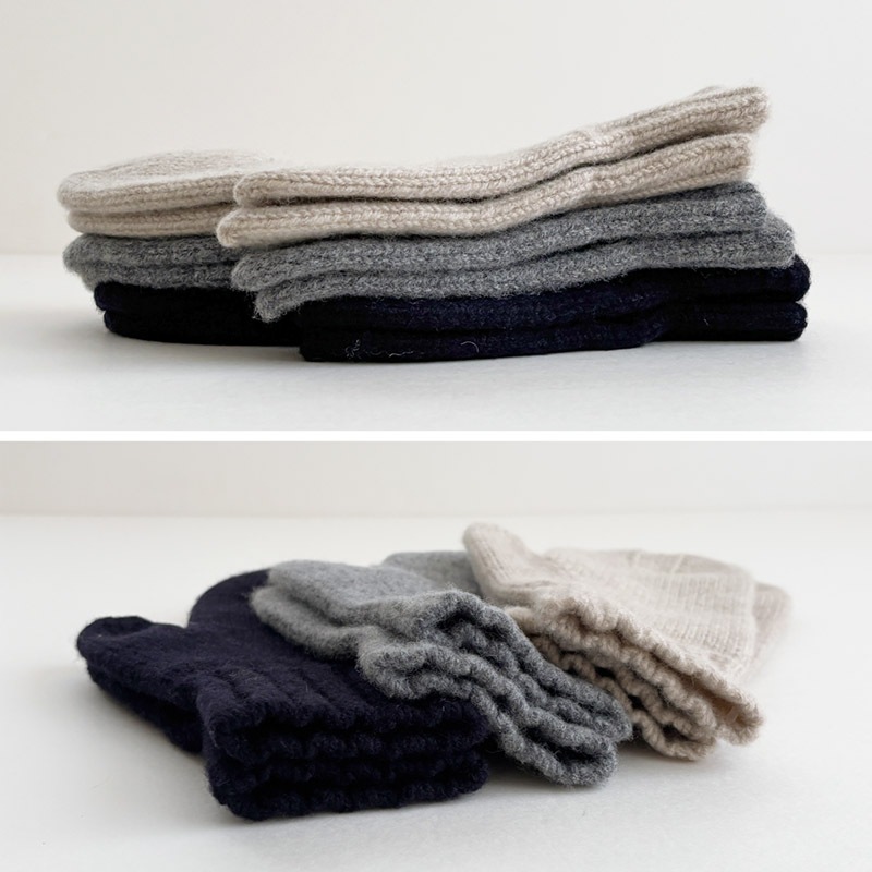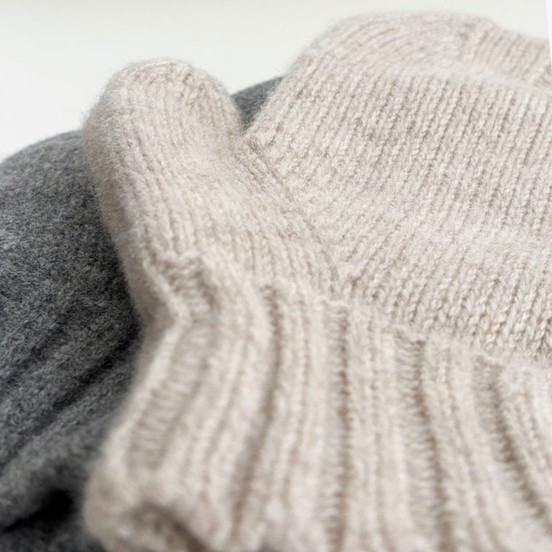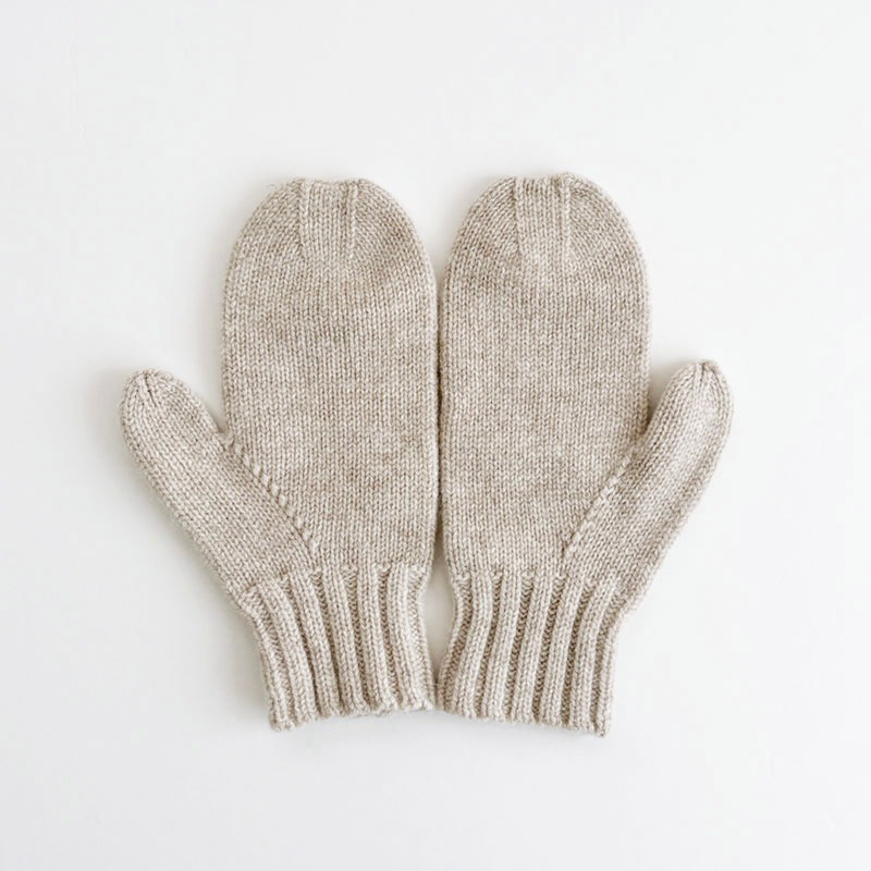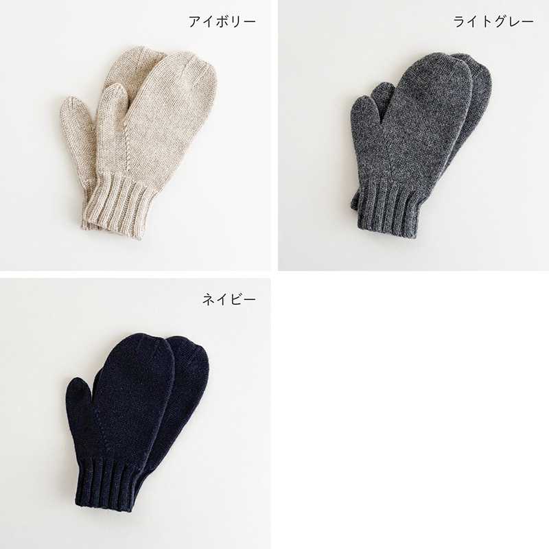 細くしなやかなラムウールで編まれたミトン。とても軽く柔らかい仕上がり。チクチク感は全くといっていいほど感じられず、なめらかで肌触り良いです。